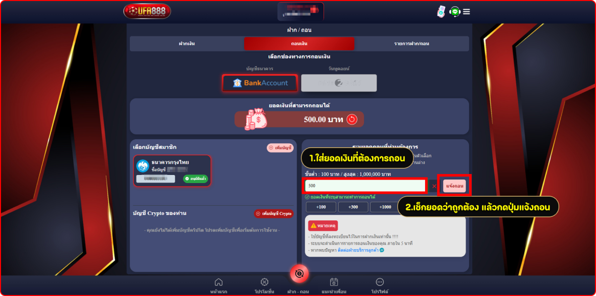 วิธีแจ้งถอนเงิน ufabet888 สำหรับสมาชิก